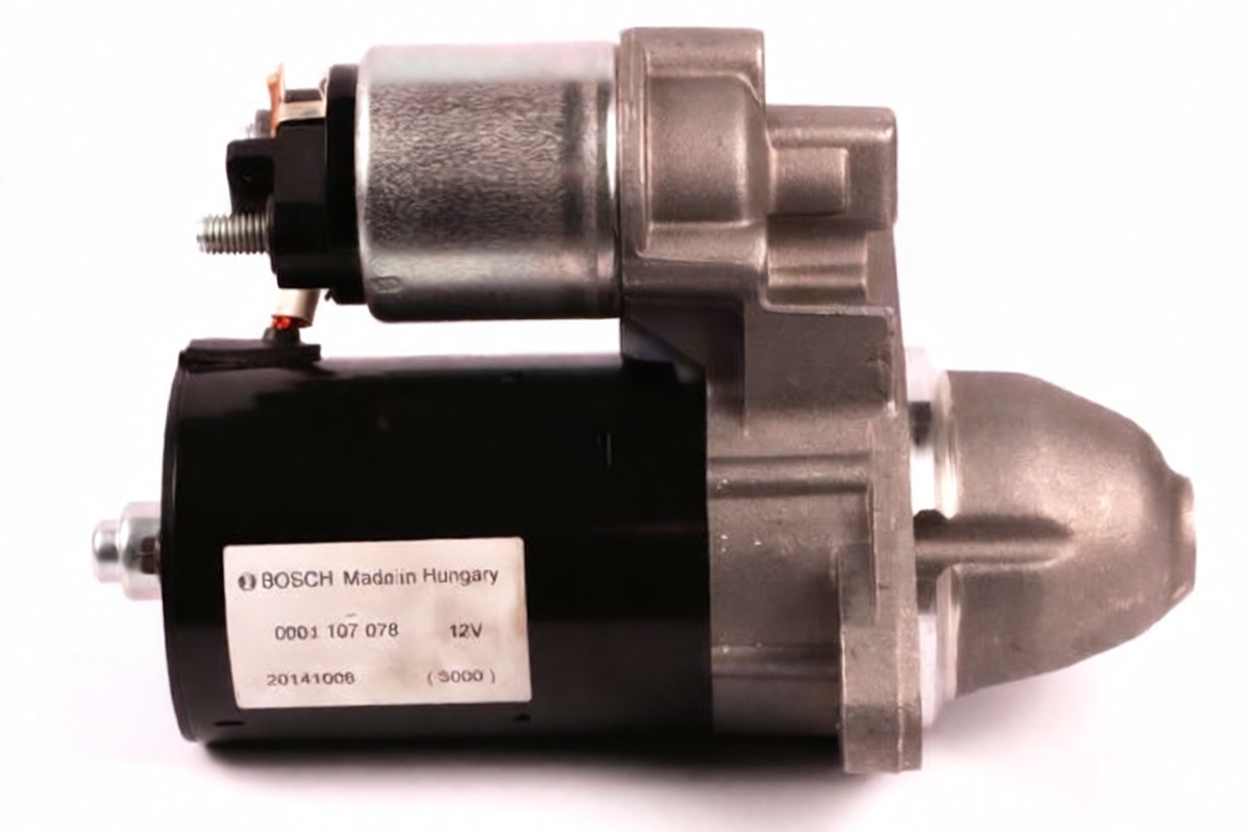Стартер Bosch 0001107078 выделяется среди аналогов благодаря высокой мощности и надежности. Его конструкция с девятью зубцами обеспечивает стабильный контакт и эффективный запуск двигателя. Изготовленный из качественных материалов, стартер гарантирует длительный срок службы и работу в условиях высокой нагрузки.