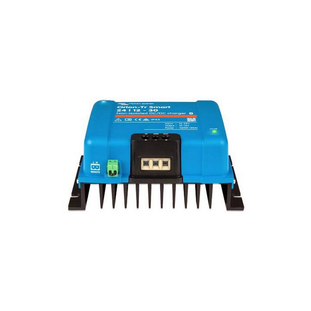 Orion-Tr Smart 24/12-30A Isolated DC-DC charger от компании Victron Energy — это высококачественное зарядное устройство, предназначенное для эффективной зарядки аккумуляторов на судах и в транспортных средствах с двойной системой питания. Устройство поддерживает 12V и 24V системы, что делает его универсальным решением для различных типов аккумуляторов, включая свинцово-кислотные и литий-ионные.