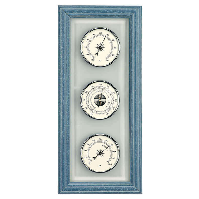 Главным преимуществом барометра, термометра и гигрометра ANVI является его эстетический вид, выполненный с использованием дерева в синем цвете. Этот прибор не только функционален, но и служит стильным элементом декора, который привлекает внимание. Высокое качество материалов и сборки обеспечивает долговечность и надежность в эксплуатации.
