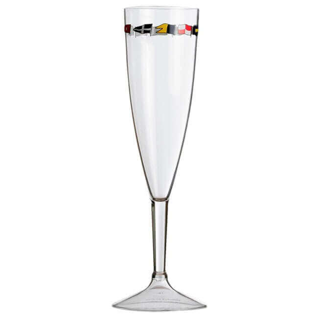 Бокалы отличаются продуманной формой, которая способствует сохранению аромата и игристости напитка, что особенно ценно при торжественных моментах во время морских прогулок или регат. Они изготовлены из материалов, соответствующих требованиям посуды для морского использования, что обеспечивает долговечность и устойчивость к воздействию окружающей среды.