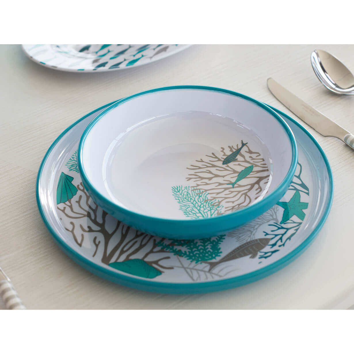 Набор из шести тарелок для десертов серии Coastal выполнен из прочного меламина с противоскользящим основанием, что обеспечивает надежное использование на борту яхты или катера. Эта серия отличается стильным и легким дизайном, вдохновленным морской тематикой, который гармонично вписывается в интерьер любого судна. Меламин обладает высокой устойчивостью к ударам и падениям, что делает посуду практичной для регулярного применения в условиях морских путешествий. Кроме того, изделия легко очищаются и подходят для мытья в посудомоечной машине, что упрощает уход за ними в дороге.