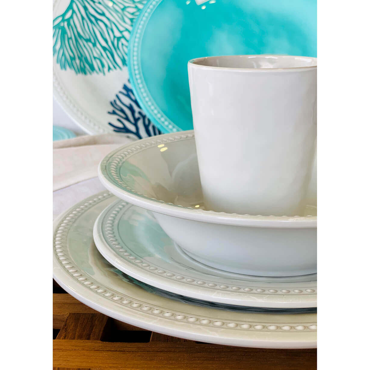 Материал набора обладает высокой прочностью и устойчивостью к ударам, что исключает возможность разбивания в условиях эксплуатации на воде. Посуда легко очищается и подходит для мытья в посудомоечной машине, что обеспечивает удобство в уходе. Благодаря своей надёжности и практичности, этот набор отлично подходит для использования на яхтах и катерах, а также может быть применён в походах, кемпингах или на даче.