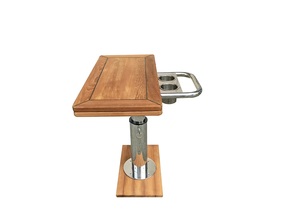 Материалы, из которых изготовлен стол, обладают высокой стойкостью к воздействию солёной воды и коррозии. Бурманский тик не только красив, но и устойчив к влаге и перепадам температур, что делает его идеальным для морских условий.