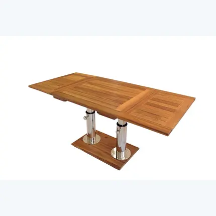 Одним из ключевых преимуществ стола Mia Marin Luna T является его возможность регулировки высоты, что позволяет использовать его как в качестве обеденного стола, так и в форме кофейного стола. Изготовленный из высококачественной нержавеющей стали 316L и бурунди тика, он сочетает в себе прочность, долговечность и стильный внешний вид. Раздвижной механизм обеспечивает удобство и практичность в использовании.