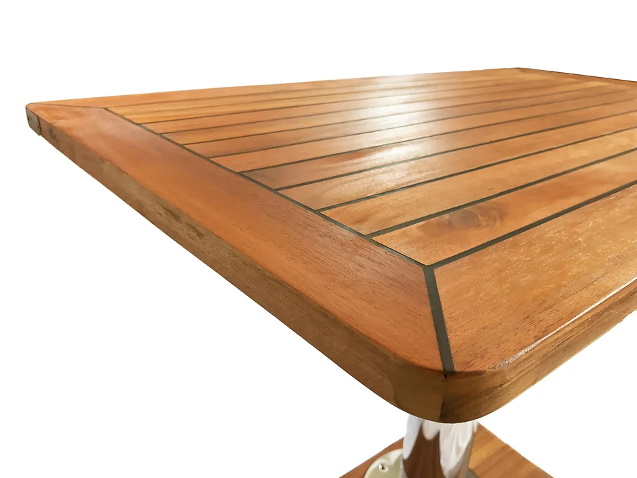 Бурма тик обладает отличными водоотталкивающими свойствами и устойчивостью к воздействию соленой воды и ультрафиолетового излучения, что делает этот стол идеальным для использования на открытом море. Нержавеющая сталь 316L также обеспечивает защиту от коррозии, что особенно важно в морской среде.