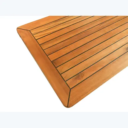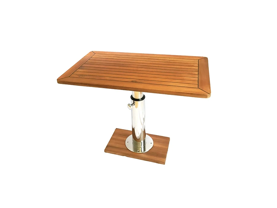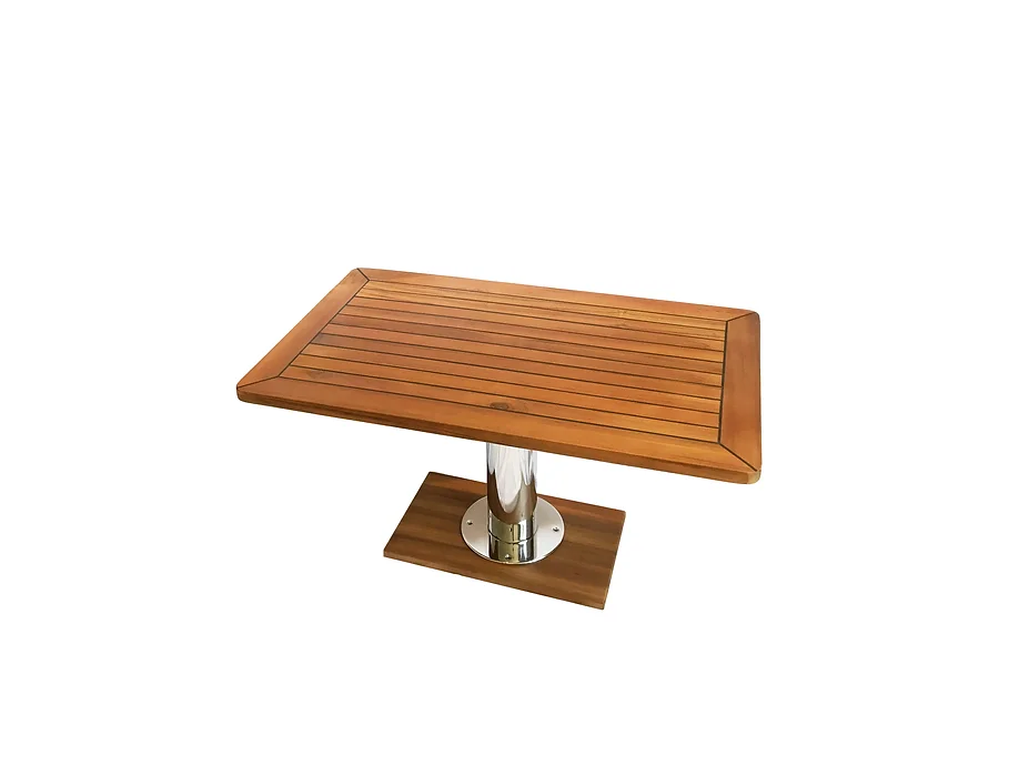 Стол изготовлен из высококачественного бирманского тика, который славится своей прочностью и эстетическим внешним видом. Нержавеющая сталь 316L, использованная в конструкции ножек, обеспечивает долговечность и устойчивость к коррозии. Регулируемые ножки позволяют менять высоту стола, что делает его функциональным и удобным в использовании в различных условиях.