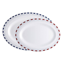 Двухсекционный набор овальных сервировочных тарелок Northwind из прочного меламина для повседневного и морского использования.