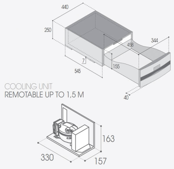 Холодильник работает от 12/24V DC и имеет мощность 44W, что делает его совместимым с большинством яхтенных систем. Компактные размеры и возможность установки компрессорного блока на расстоянии до 1,5 метров от холодильной камеры упрощают монтаж и оптимально используют доступное пространство на борту.