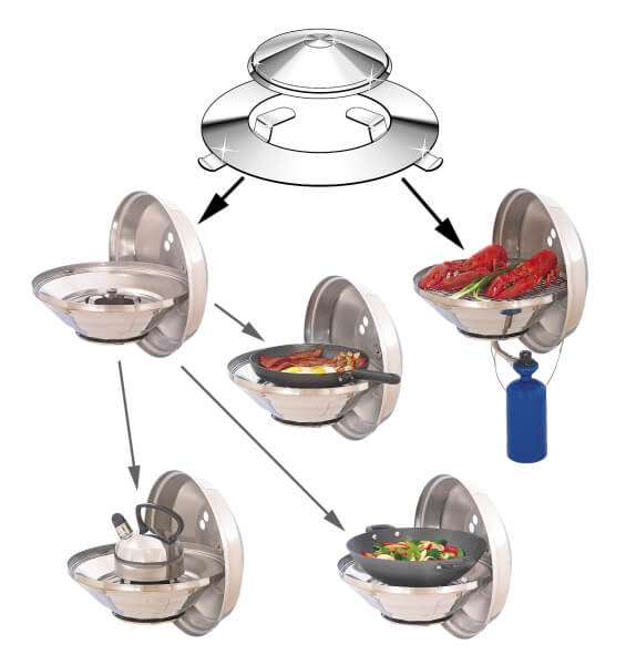 Газовая плита/мангал MAGMA A10-018 представляет собой универсальное устройство, предназначенное для приготовления пищи на борту яхты. Она может использоваться как плита, гриль или мангал, обеспечивая разнообразие в кулинарных возможностях и удобство в эксплуатации.