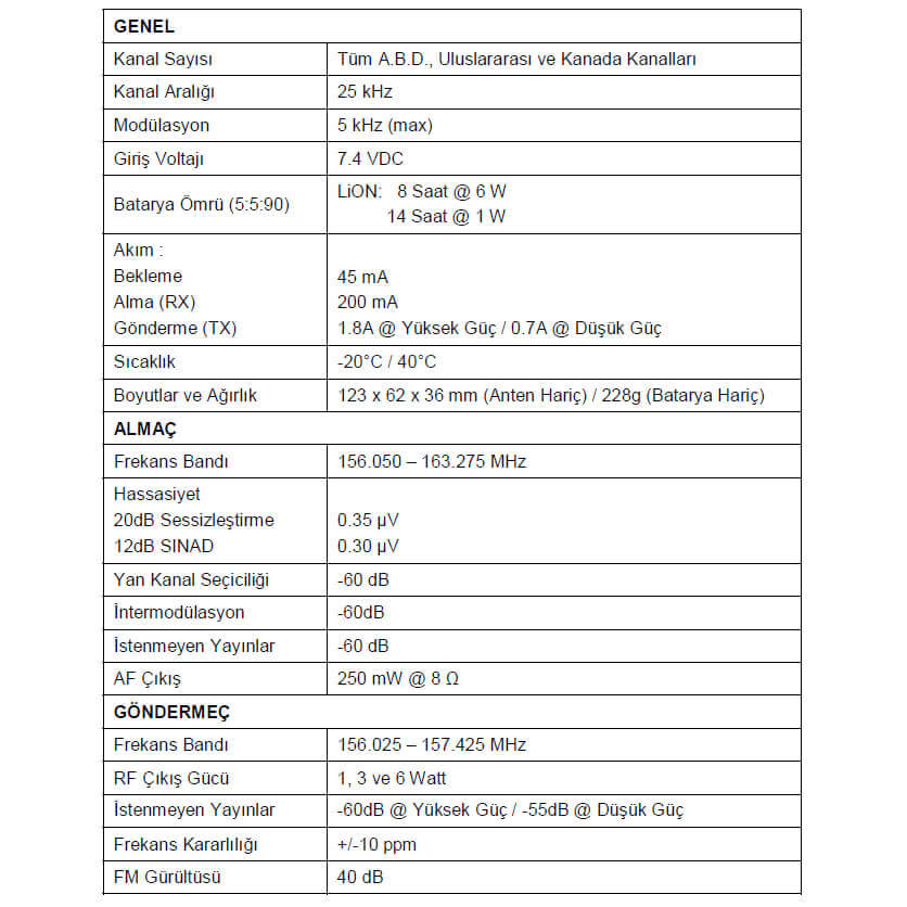 Радиостанция соответствует международным стандартам, что подтверждает её надежность и безопасность в использовании на море. Для использования на турецких судах требуется лицензия от Кий Emniyet Müdürlüğü, а для иностранных судов необходим сертификат регистрации судна.