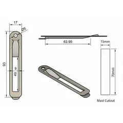 Вывод фала Z-SPARS из пластика, подходит для веревок до 13 мм. Размеры 135x30 мм, фиксируется заклепкой 5 мм.