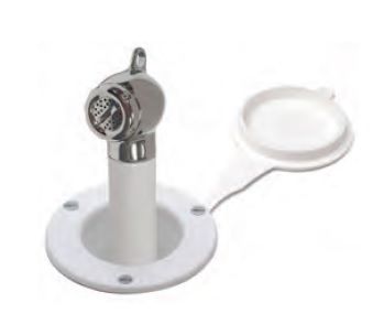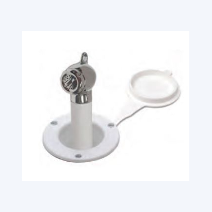 Душ выполнен в классическом белом цвете, что позволяет ему гармонично вписаться в любой интерьер на борту. Он отличается простотой в использовании и установке, что делает его удобным выбором для владельцев яхт. Применение данного душа способствует созданию комфортных условий для гигиенических процедур, что особенно актуально в условиях ограниченного пространства на плавательных средствах.