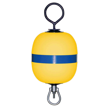 Жёлтый буй POLYFORM длиной 600 мм и диаметром 285 мм. Прочный материал, удобное кольцо для крепления, идеален для водных условий.