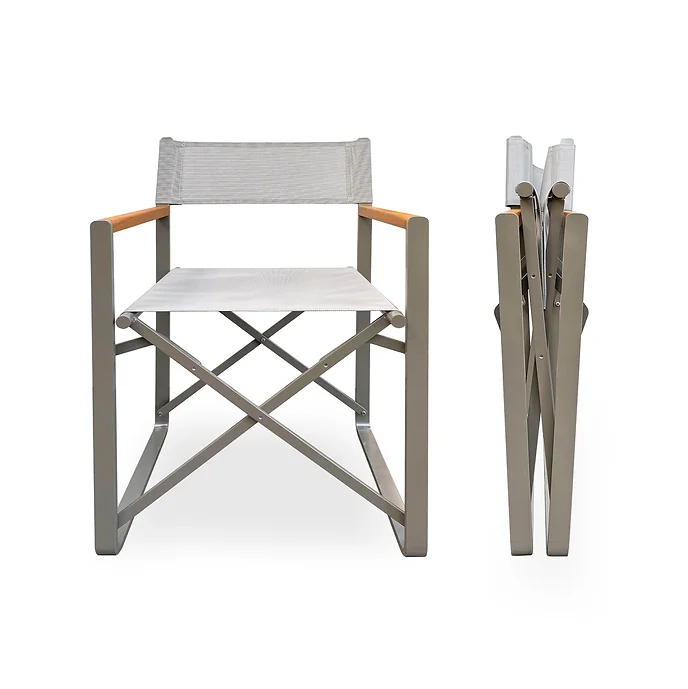 Mia Marin West Sandalye представляет собой складной режиссерский стул, специально разработанный для использования на яхтах и катерах. Каркас выполнен из прочного и легкого алюминия с защитным покрытием, что обеспечивает долговечность и устойчивость к коррозии в морской среде. Подлокотники изготовлены из натурального тика, известного своей стойкостью к влаге и соленой воде, что делает стул практичным и эстетичным элементом яхтенной мебели.