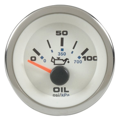 Манометр масла Teleflex с белым циферблатом, диапазоном 0-100 psi и подсветкой для надежного контроля давления в двигателе.