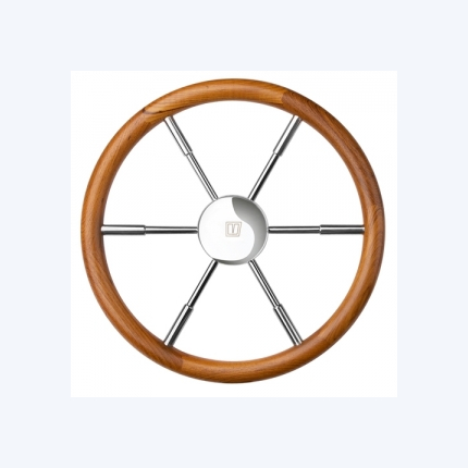 Элегантное рулевое колесо Vetus PRO60T диаметром 600 мм с тиковой рукояткой и нержавеющей сталью. Идеально для яхт.