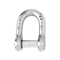 D-образный шакл WICHARD из кованой нержавеющей стали 316L с рабочей нагрузкой 2400 кг. Идеален для морских условий.