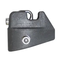 Серый пластиковый наконечник для гика Z95 с C-образной скобой для крепления такелажного троса, с максимальными размерами 62x29 мм.