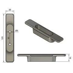 Пластиковый косяк длиной 120 мм для крепления такелажа на яхтах, выполнен в сером цвете, устойчив к воздействию влаги и морской среды.