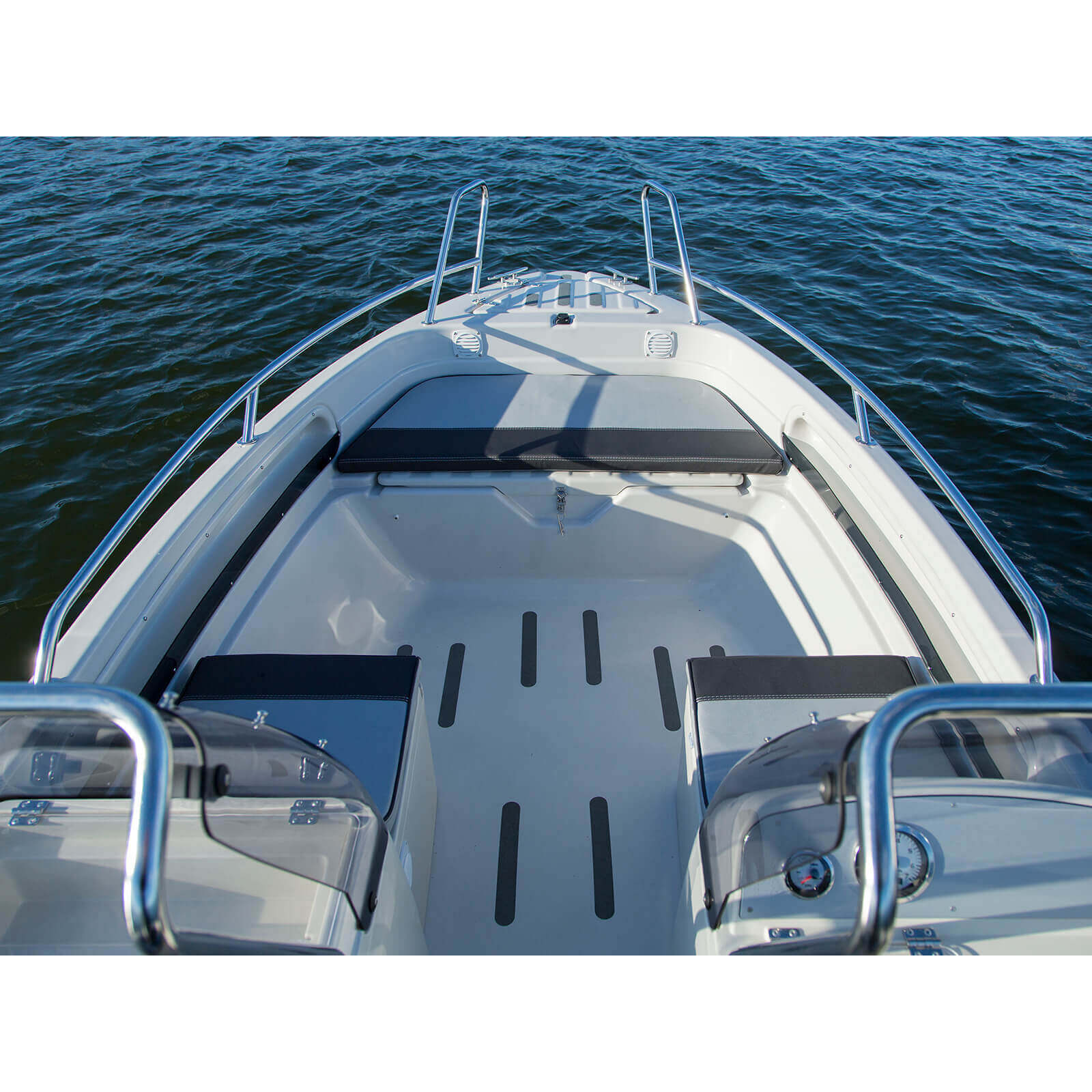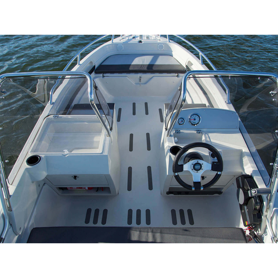 Лодка TERHI 475 TWIN C представляет собой надежное и функциональное судно длиной 4,75 метра и шириной 1,85 метра, рассчитанное на комфортное использование группой до пяти человек. Вес лодки составляет 370 кг, что обеспечивает удобство транспортировки и маневрирования. Она оснащена транцем длинного типа и рассчитана на установку подвесного мотора мощностью от 40 до 50 л.с., с максимальным весом мотора до 115 кг. При загрузке двумя пассажирами лодка способна развивать скорость до 32 узлов, что делает её подходящим выбором для прогулок и рыбной ловли на прибрежных водах и озёрах.