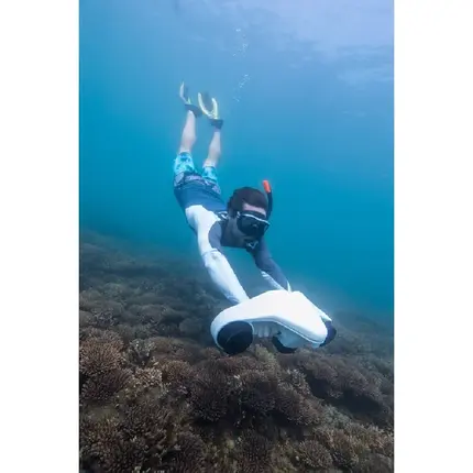 Скутер Manta с аккумулятором 126W обеспечивает максимальное время работы 35 минут и тягу до 9 кг для погружений и снорклинга.