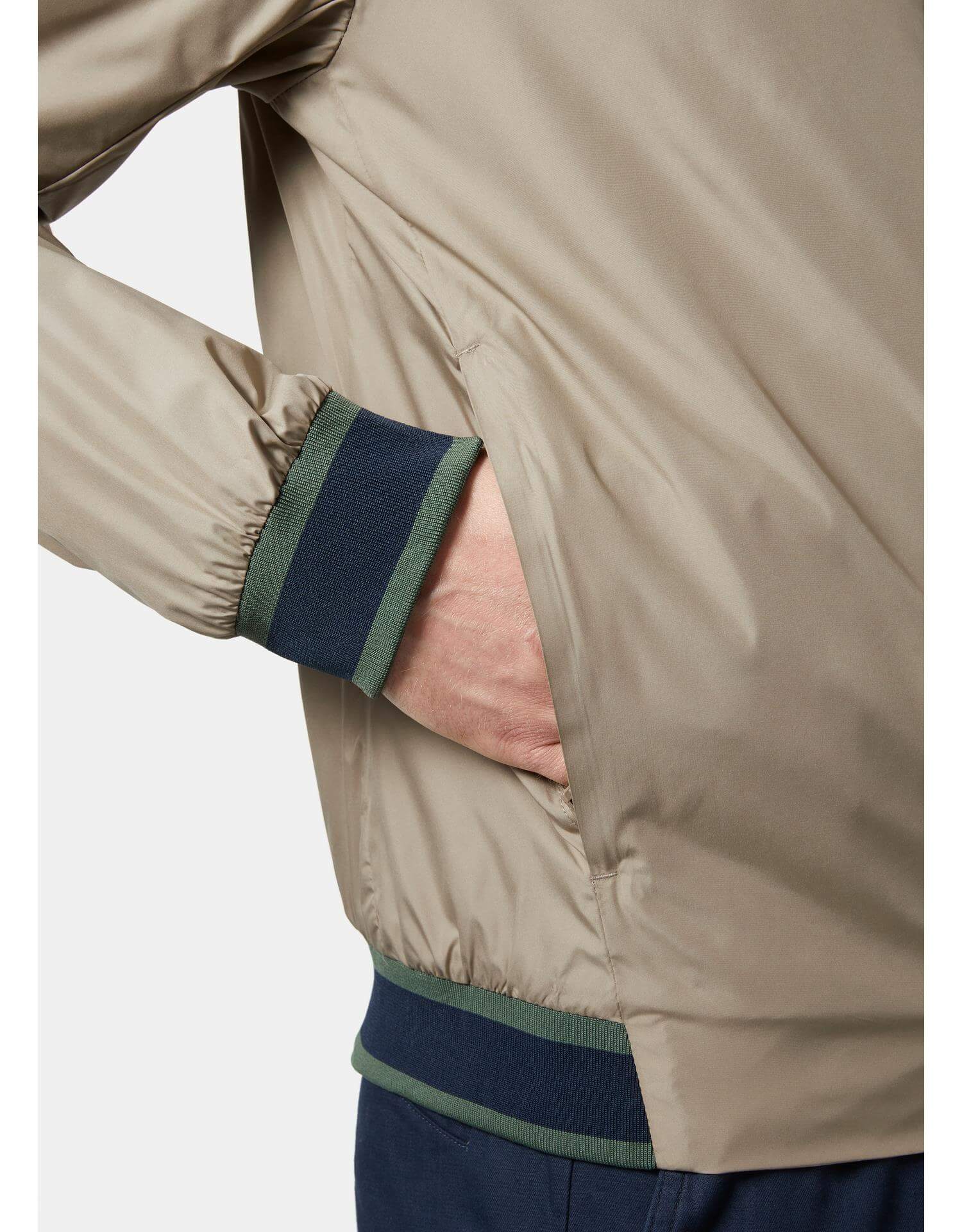 Куртка выделяется своим элегантным дизайном в парусном стиле и высококачественными материалами. Водоотталкивающая и ветрозащитная оболочка гарантирует надежную защиту от непогоды, а сетчатая подкладка обеспечивает дополнительный комфорт при носке. Удобные карманы с молнией и съемные регулируемые ремни делают использование куртки еще более практичным.